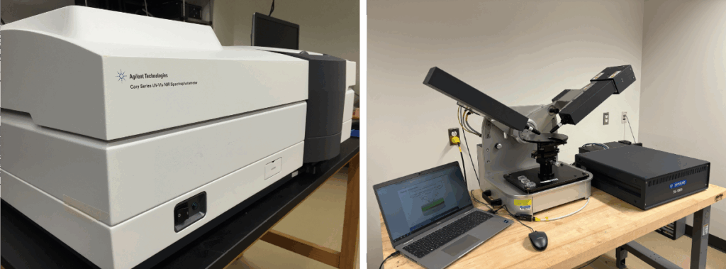 Capabilities: (1) Non-contact measurements on thin films to obtain thickness and optical properties; (2) Variable angles (60º, 65º, 70º, 75º).